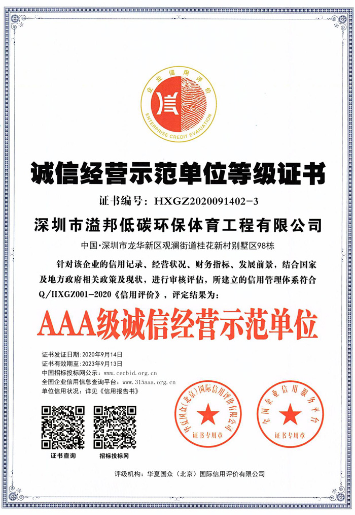 一直以來,公司與國內(nèi)國外眾多體育設(shè)施供應(yīng)商聯(lián)手合作,不斷的吸收和引進(jìn)國內(nèi)外專業(yè)技術(shù),積累了豐富的產(chǎn)品和場地承建經(jīng)驗(yàn)。并以通過ISO9001國際質(zhì)量體系認(rèn)證為契機(jī),始終堅(jiān)持以先進(jìn)的理論技術(shù)和豐富的實(shí)踐經(jīng)驗(yàn)為導(dǎo)向,在市場有序競爭中,成為一個(gè)施工規(guī)范、高效負(fù)責(zé)、動(dòng)作協(xié)調(diào)、服務(wù)完善的專業(yè)化低碳環(huán)保體育工程建設(shè)公司。公司秉持“嚴(yán)格質(zhì)量、過硬技術(shù)、專業(yè)服務(wù)”的經(jīng)營理念成為行業(yè)競爭中的佼佼者。展望未來,公司全體同仁繼續(xù)以“再接再歷、鍥而不舍、精益求精”的服務(wù)精神,使“溢邦低碳體育品牌”得到更廣大的用戶喜愛,為促進(jìn)中國體育事業(yè)的繁榮和強(qiáng)大作出更多作供獻(xiàn),并創(chuàng)建品牌走向世界,用新時(shí)代的理念與國內(nèi)外各界朋友精誠合作,共創(chuàng)美好未來!